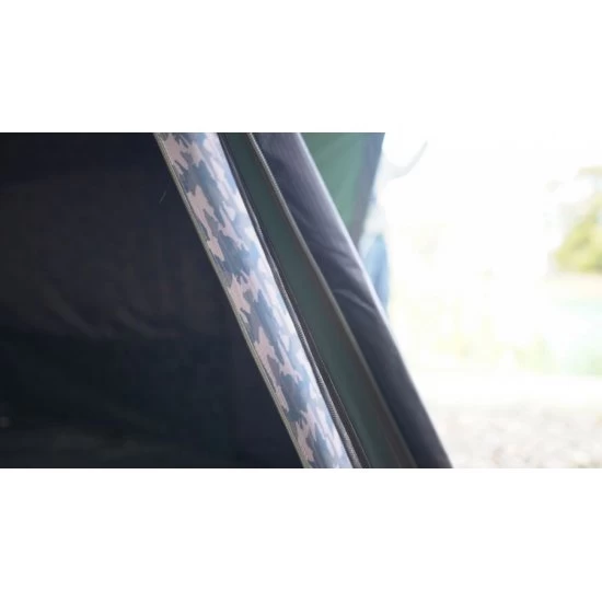- L’ouverture frontale et les fenêtres sont équipées de moustiquaires camo