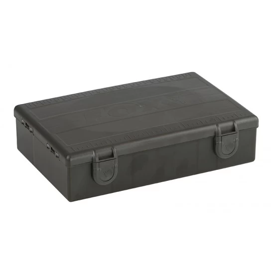 La nouvelle gamme Fox Tackle Box a combiné le légendaire concept Fox F-Box avec l’inspiration du marché et de nombreuses nouvelles idées. Avec cela, la gamme est complètement à jour et revient à sa place : à la pointe de la conception de boîtes à pêche. L’utilisation du couvercle complet pour le stockage du matériel d’extrémité maximise la capacité tout en gardant la boîte aussi compacte que possible. Le grand couvercle comporte 37 compartiments individuels, y compris des charnières améliorées et des couvercles transparents sur les compartiments, afin que le contenu puisse être vu. Une feuille d’autocollants a également été incluse pour étiqueter le contenu pour une identification rapide.