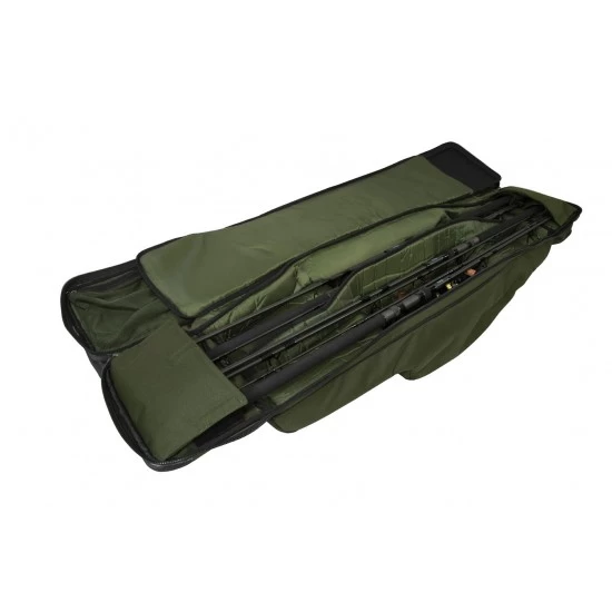 L’Atom 4-Rod Protection Holdall est bien plus qu’un fourre-tout de tous les jours pour protéger quatre cannes Atom® confectionnées. Il est conçu comme une solution tout-en-un qui vous permet de voyager avec un minimum de bagages, sans avoir à faire de compromis sur l’équipement dont vous avez besoin. Le moulinet arrière et la section de guidage renforcés par une plaque en PE accueillent facilement quatre gros moulinets et des anneaux de 50 mm sans endommager les cannes et les moulinets. Les tiges sont fixées à chaque extrémité et séparées par un séparateur rembourré, les tiges étant ensuite recouvertes par un séparateur central rembourré pour une protection supplémentaire. D’autre part, le diviseur a une pochette, des boucles élastiques et des sangles pour ranger des objets tels que des piques, des bâtons de distance et un tuyau de lancement. L’intérieur du sac comporte également trois poches zippées pour la pochette Roving Rig, la pochette Roving Buzz Bar et d’autres accessoires, ainsi qu’un plateau de montage robuste en EVA qui peut être retiré et utilisé seul si nécessaire. Cela vous donne accès à toutes les nécessités, telles que vos cannes et votre matériel d’extrémité, dès que vous ouvrez le fourreau. Les grandes poches avant externes accueillent le XL Buoyant Weigh Sling, l’Atom® Landing Net et l’Atom® 12m Baiting Pole, avec deux poches supplémentaires idéales pour ranger le plomb et les petits objets. Cette solution complète de protection et d’attirail de tige est dotée de poignées plates pour un levage facile et d’une bandoulière rembourrée confortable pour le transport.