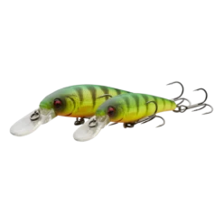 La série Megabass R diffère des modèles Vision Oneten normaux car ils ont un profil plus large, des côtés différents et le point d’équilibre est plus central dans le jerkbait. Cela garantit également une action plus serrée lors de la pêche linéaire du jerkbait. Lors de la secousse, cela fait que le jerkbait se balance davantage sur le côté. Cette variante de la série Oneten est flottante et convient donc pour pêcher plus rapidement une grande pièce d’eau.