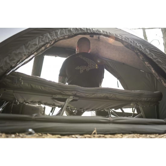 Le système HQ Dual Layer Brolly est le dernier né de la gamme HQ Dual Layer. Fini avec notre tissu Dura-Stop unique de 20 000 mm, le système HQ Dual Layer Brolly peut facilement affronter les éléments. Le Brolly a été conçu avec un dossier complètement plat, ce qui signifie que vous pouvez placer votre bedchair plus en arrière, créant ainsi un espace supplémentaire à l’avant. La peau interne aide non seulement à retenir la chaleur et à réduire la condensation pendant les mois les plus froids, mais aide également à garder le brolly frais pendant les mois les plus chauds. La peau double couche est finie dans notre motif camouflage personnalisé et peut être laissée en place à tout moment, même lors de l’emballage du brolly. Le brolly comprend une porte de style boîte aux lettres avec un panneau central en maille camouflage, des vitres latérales arrière avec des panneaux en maille camouflage et une façade entièrement amovible. Le parapluie a également une gouttière pour canaliser l’eau du toit vers les côtés et 2 sangles de tige. L’arrière du parapluie est doté d’une immense fenêtre zippée avec panneau camouflage. Le panneau en maille camouflage peut également être zippé pour révéler le système à double couche qui dispose également d’un panneau zippé pour une circulation d’air maximale.
